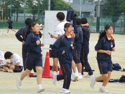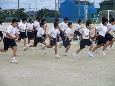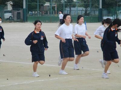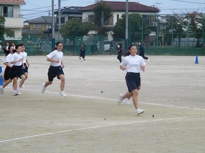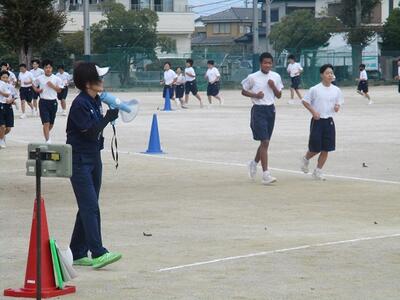 今日も体育の授業では、長距離走を行っていました。長距離走は克服的競技とも言われ、自分との戦いでもあります。苦しいけれども、秋の爽やかな風を楽しみながら走ってほしいです。先生方も一緒に応援しながら走っています。