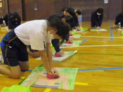 本日、5、6、7組が、大沼中体育館を会場に、春日部南中、大沼中、武里中の3校による合同学習会を行いました。
