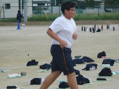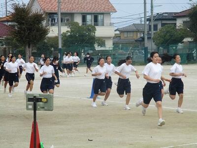 体育の授業は、陸上の長距離走を行っています。長距離走は苦手な生徒も多いと思いますが、それぞれが自分のペースで一生懸命頑張っています。