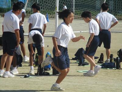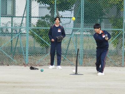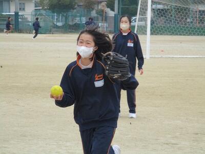 校庭でソフトボールをしていた生徒達は、笑顔いっぱいで走り回っていました。
