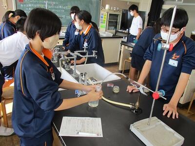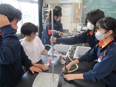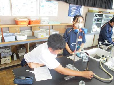 理科の授業では、ガスバーナーを使って実験を行っていました。