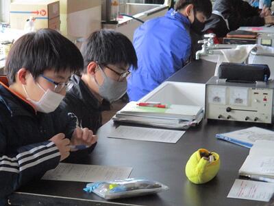 1年生の理科の授業では、音の伝わり方について学習していました。教員の実験を見て、「オーッ!」、「エー、すごい!」などの声が上がり、目を輝かせていました。
