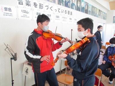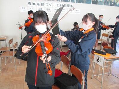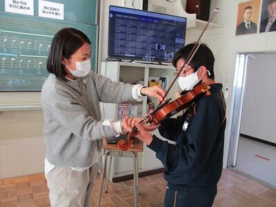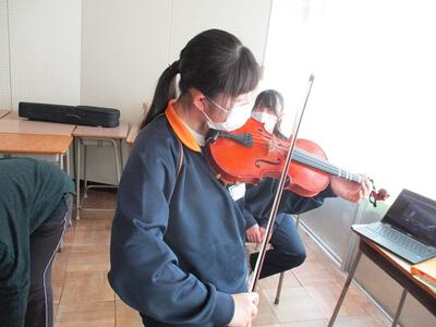 今日も音楽室からバイオリンによる「きらきら星」が聞こえてきます。でも、音楽でのバイオリンの授業も、もう終わりになります。これからは卒業式に向けての練習となります。
