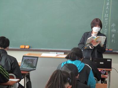 生徒は朝読書で、落ち着いて取り組む雰囲気をつくり、授業に入ります。