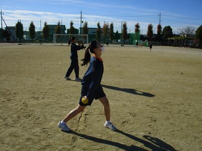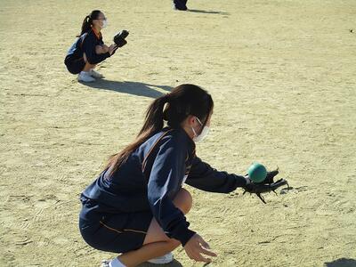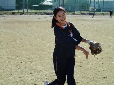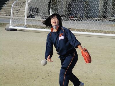 校庭でソフトボールをしていた生徒達は、笑顔いっぱいで走り回っていました。