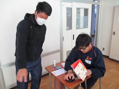 部活動終了後に、お世話になった人への年賀状書きや冬休みの出題をしている生徒がいました。南中生は、冬休みもしっかり頑張っています。