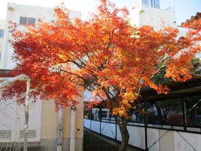 校庭の寒椿の花が綺麗に咲いています。冬の訪れを感じます。