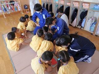 昨日から学校近くの信愛保育園に学級ごとに出かけて3年生家庭科保育実習が始まりました。生徒たちは保育の楽しさ、難しさ、様々なことを実体験をとおして学びます。