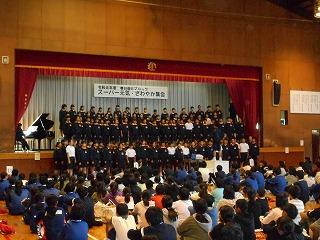 午前中1年生から3年生までの合唱コンクール、文化部の活動紹介、吹奏楽部の発表がありました。閉会式では、本校の校歌を作っていただいた山下伶さんの、クロマチックハーモニカの演奏もあり、盛り上がりました。
