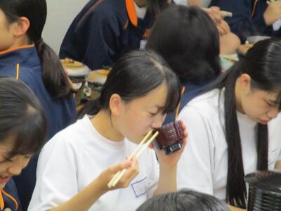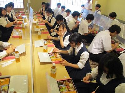 クラス行動を終え、ホテルでチキンライスのお弁当をいただきました。「おいしかったです。ごちそうさまでした。」と感謝の気持ちをしっかりと伝えていた生徒がたくさんいました。
