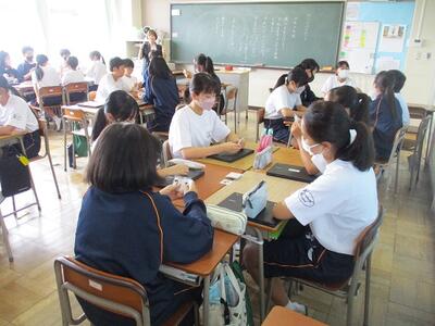 2年生は4時間目に、先日の出前授業で学んだことを、班ごとにまとめて発表会を行っていました。