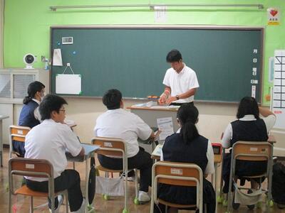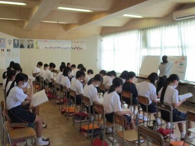2年生が⑤⑥限を使って「出前授業」を行いました。出前授業とは、高校の先生方にお越しいただき、講師として生徒達に授業を行っていただくことです。