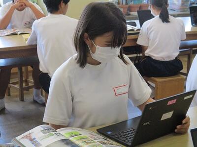 2年生の国語の授業に図書館支援員の方、ICTサポーターの方をお招きして情報の取り扱い方を勉強しました。途中1年生のクラスともオンラインで交流し、考えを深めることができました。