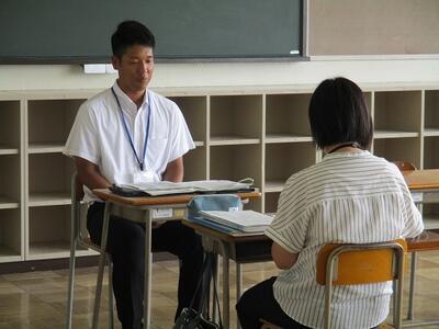 校長面接は1学期が1年生、2学期が3年生、3学期が2年生で予定しています。校長先生と1対1で行います。