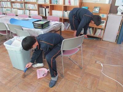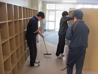 5、6、7組の生徒が教室の床のワックスがけを行ってくれました。床がピカピカです。