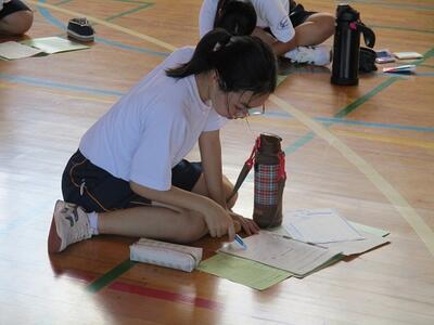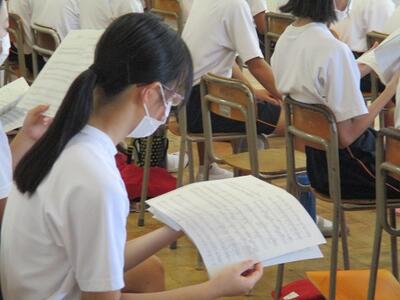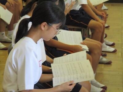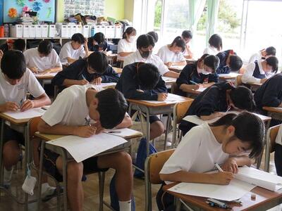 今日は2学期2日目で3時間授業です。学年集会や、人権作文、確認テストなどが行われました。
