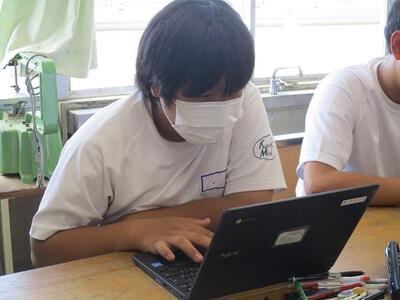 家庭科の授業では、ミシンを使って、ペットボトルフォルダーの製作を行ってます。