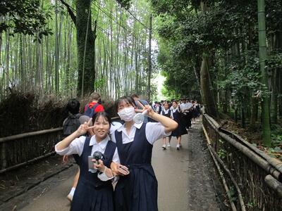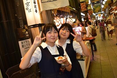 2日目の班行動の様子と、食事後の京都駅、京都タワー見学の様子です。