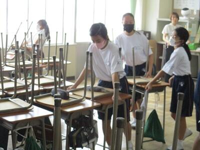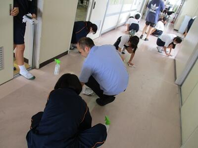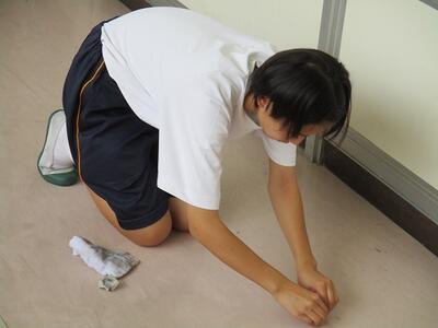 昨日、放課後に各クラスの代表生徒がワックスがけを行ってくれました。これで、ピカピカになった床で終業式、2学期を迎えられます。ありがとうございました。