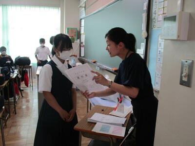 校長面接は1学期が1年生、2学期が3年生、3学期が2年生で予定しています。校長先生と1対1で行います。