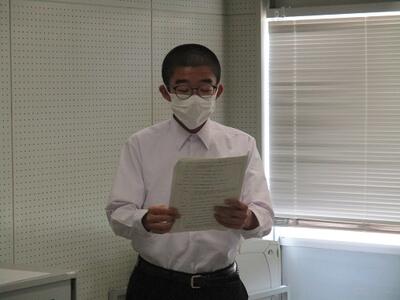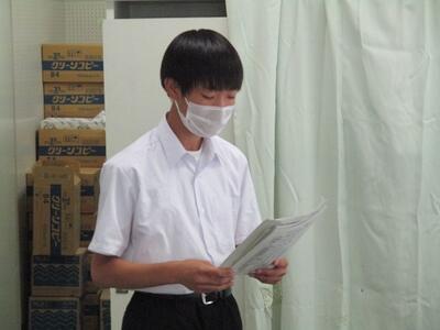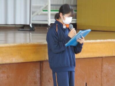 生徒が司会進行を務め、各クラスの代表者による作文発表や修学旅行、進路についての説明がありました。