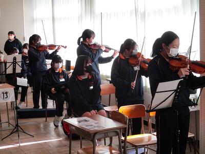 今日も音楽室からバイオリンによる「きらきら星」が聞こえてきます。でも、音楽でのバイオリンの授業も、もう終わりになります。これからは卒業式に向けての練習となります。