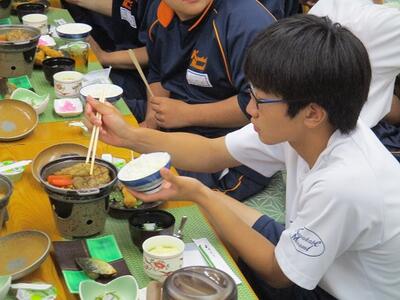 クラス行動を終え、ホテルでチキンライスのお弁当をいただきました。「おいしかったです。ごちそうさまでした。」と感謝の気持ちをしっかりと伝えていた生徒がたくさんいました。