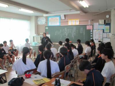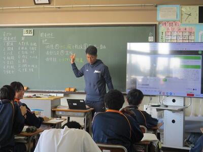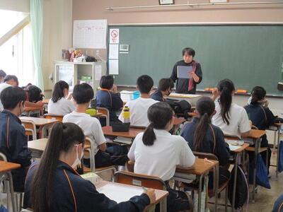 2年生が⑤⑥限を使って「出前授業」を行いました。出前授業とは、高校の先生方にお越しいただき、講師として生徒達に授業を行っていただくことです。