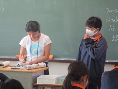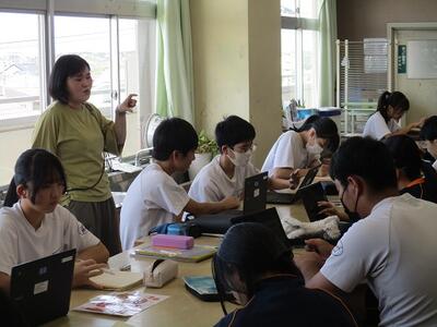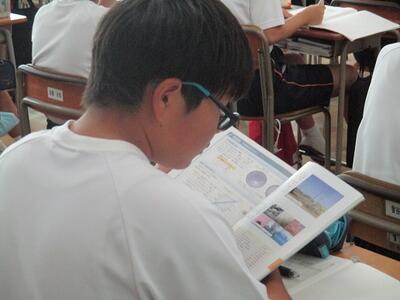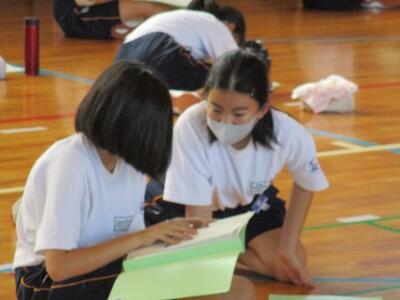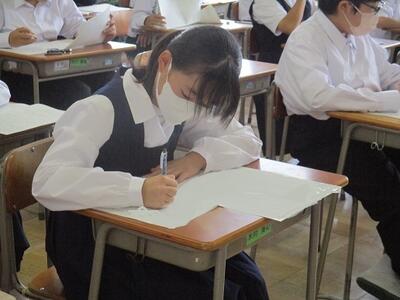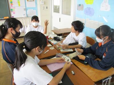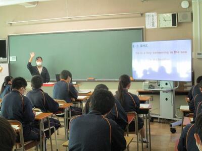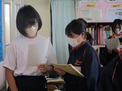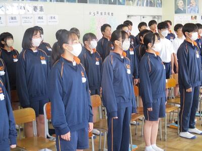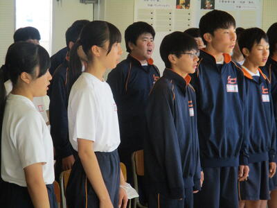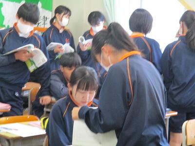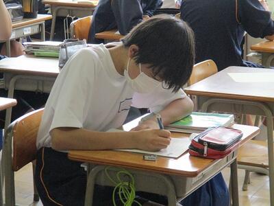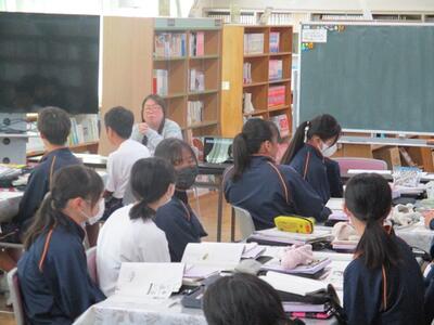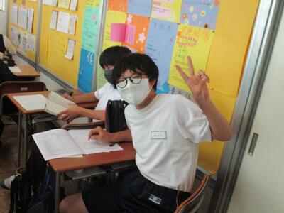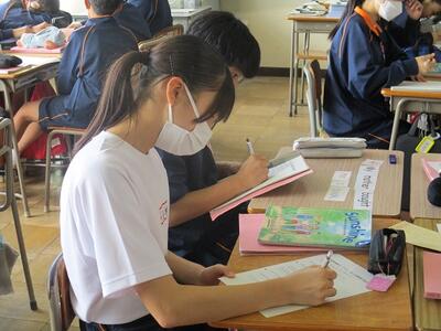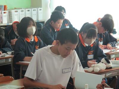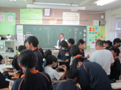 また今日は、英語科の研究授業があり、県、東部、市の教育委員会から5名の先生がお越しになり、授業参観と研究協議を行いました。でも生徒達は緊張することもなく、いつも通りにしっかりと授業に取り組んでいました。