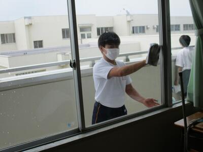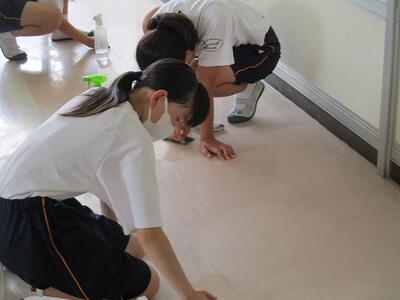 昨日、放課後に各クラスの代表生徒がワックスがけを行ってくれました。これで、ピカピカになった床で終業式、2学期を迎えられます。ありがとうございました。