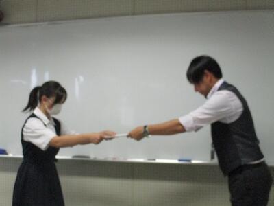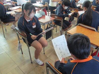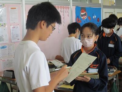 生徒は緊張しながらもしっかりと答えていました。