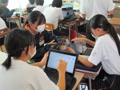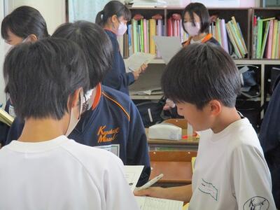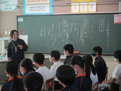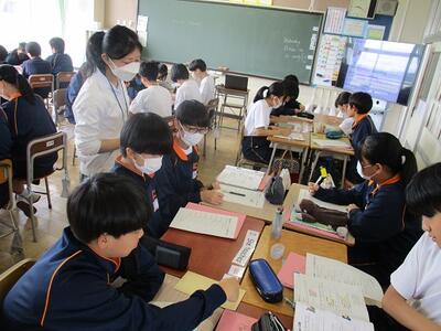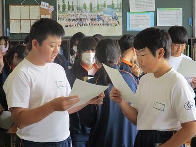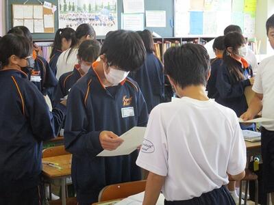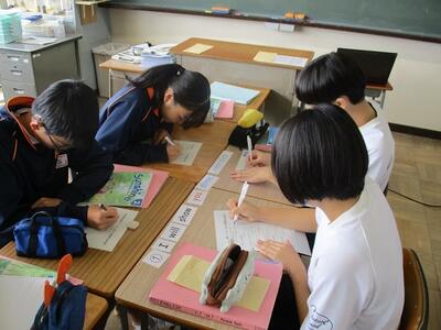 2年生は4時間目に、先日の出前授業で学んだことを、班ごとにまとめて発表会を行っていました。