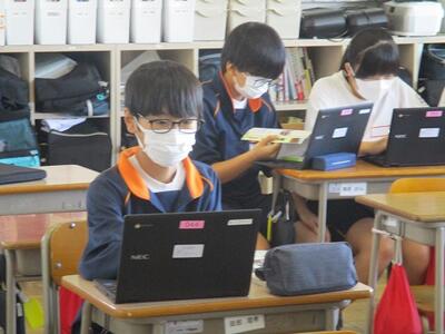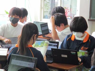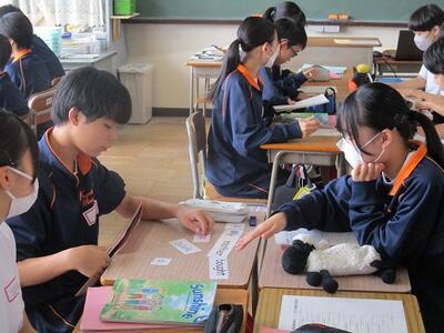 2年生の国語の授業に図書館支援員の方、ICTサポーターの方をお招きして情報の取り扱い方を勉強しました。途中1年生のクラスともオンラインで交流し、考えを深めることができました。