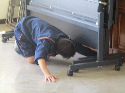 今日はテスト2日目です。4時間目は防災教室を行いました。竜巻から身を守ることを各クラスで確認しました。
