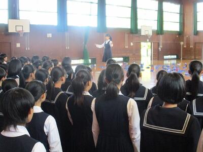 4限目に、いよいよ明日から始まる修学旅行の直前集会を行いました。
