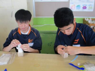 思ったよりも難しく、生徒達も笑顔で楽しく悪戦苦闘していました。