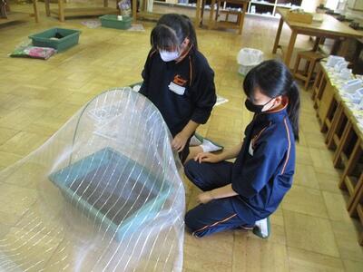 技術科の授業では、小松菜の間引きを行っていました。なぜ間引きが必要なのか生徒に質問したところ、100%完璧な答えが返ってきました。