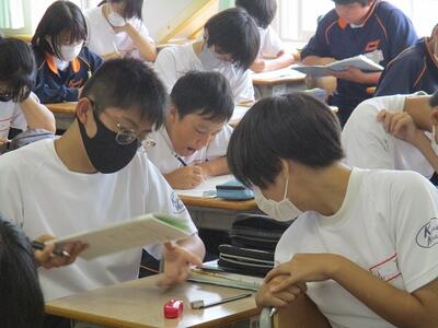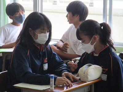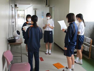 3年生の英語では、ALTとの会話テストを行っていました。1対1なのでみんな緊張した様子でしたが、しっかりと質問を理解して、的確に解答をしていました。8日から始まる修学旅行でも、ぜひその語学力を使ってみたいですね。