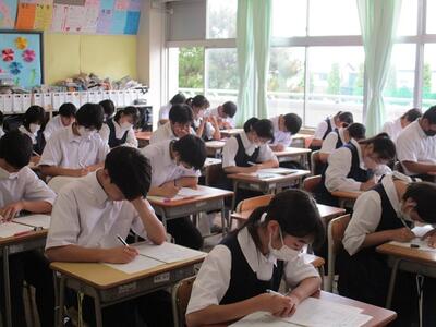 今日も生徒は、一生懸命にテストに立ち向かっています。最後の教科のテストが終わったときの「ほっとした顔」が目に浮かびます。