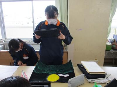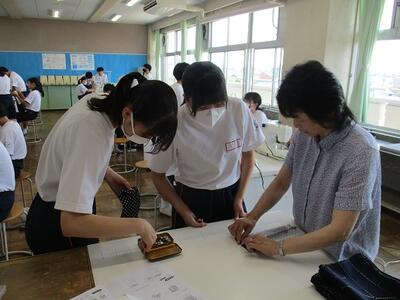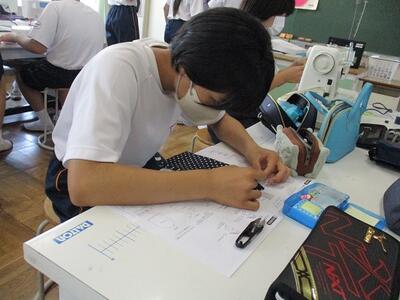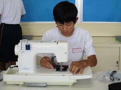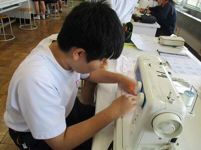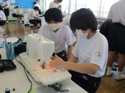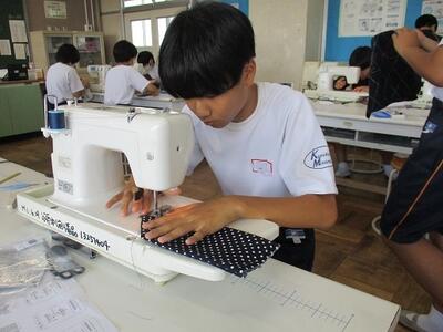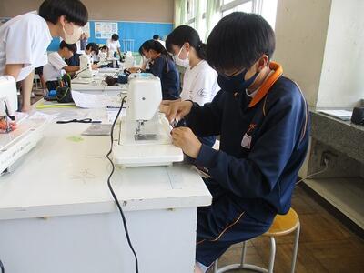家庭科の授業では、ミシンやアイロンを使って作品を仕上げていました。