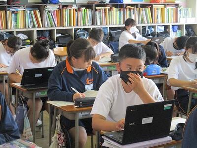 残った生徒は、タブレット等を活用して、しっかりと学習に取り組んでいます。