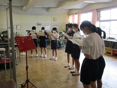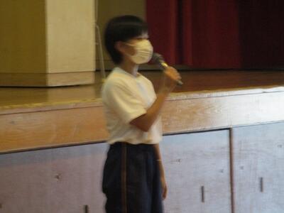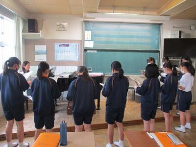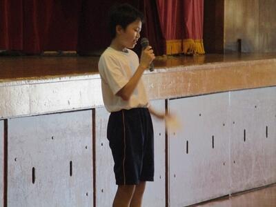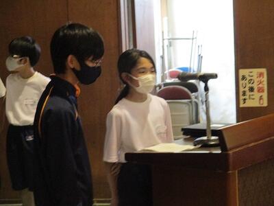 また、1年生に早く校歌を覚えてもらうために、2,3年生の代表者による校歌のプレゼントを行いました。