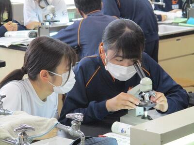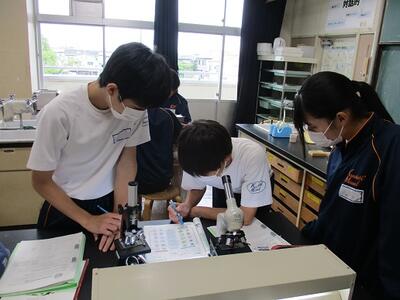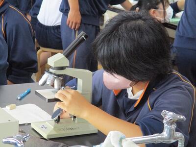 音楽の授業では「大地讃頌」をパートごとに別れての練習、理科の授業では顕微鏡を使って「生物が成長するときの細胞の変化」について観察していました。