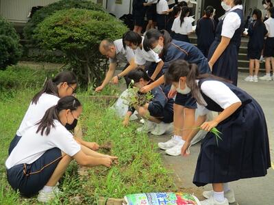 校務員さんは、電気機器の修理や草むしり等、フル稼働で頑張ってくれています。生徒のためにいつもありがとうございます。