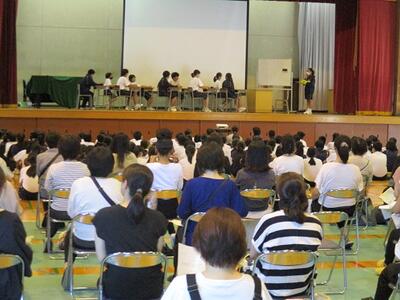 これは、1年生に学校のルールや生徒の活動について知ってもらうための集会です。