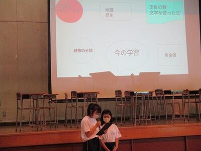 生徒主導による全体会では、各クラスの個性溢れる発表がとても素晴らしく、4月から大きく成長した姿が見られました。さすが南中1年生!