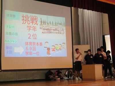 5時間目に体育祭に向けて、結団式を行いました。