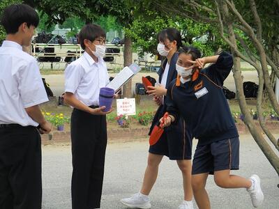 9日後の体育祭に向けて、体育の授業や学年練習にも熱が入っていますが、生徒の健康第一を考えて、水分補給や休憩もしっかりと行っています。