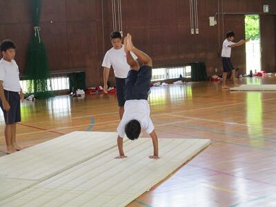 体育の授業では、マットや平均台を使っての授業が始まりました。