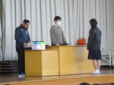 1年生では、学年の先生方へ感謝状が贈られていました。